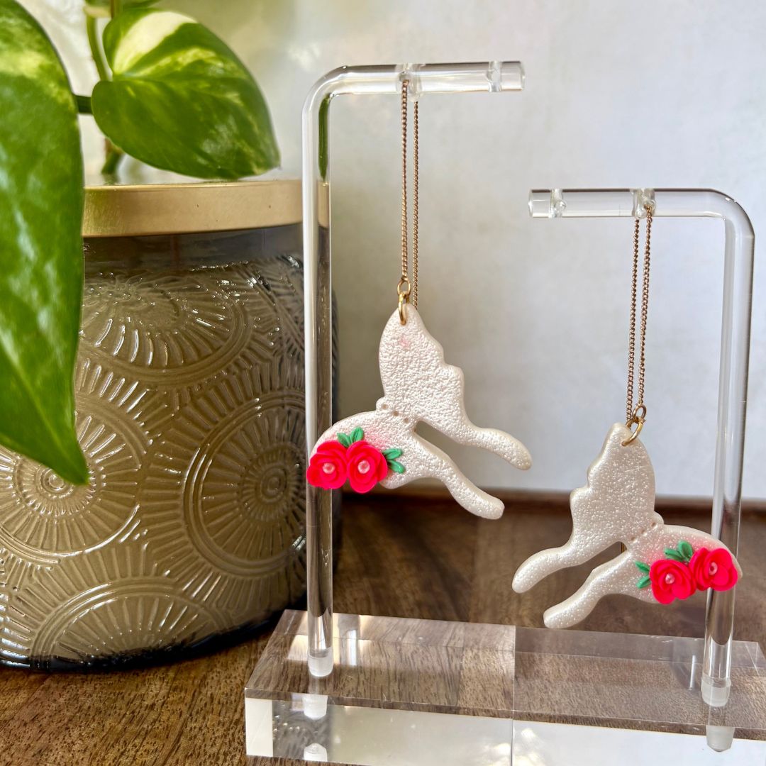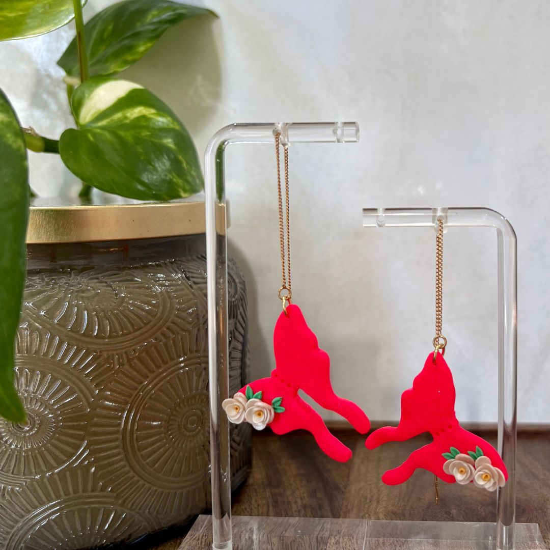 Make a bold statement with these neon butterfly earrings. Handcrafted from lightweight polymer clay, they feature striking fluorescent colors that catch the light beautifully. Comfortable to wear all day, these playful earrings add a fun pop of color to any outfit. Perfect for anyone who loves unique, eye-catching jewelry with personality.